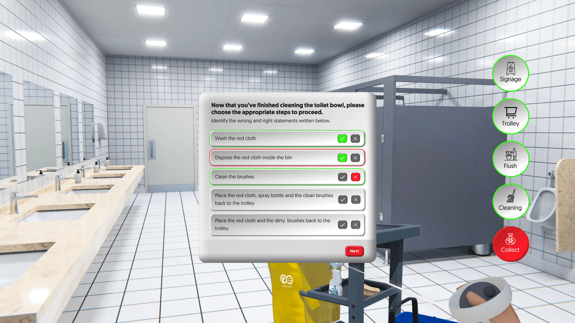 Realistic Action Replication: The VR environment simulates the exact motions required for effective toilet bowl cleaning, providing hands-on practice in a safe and controlled setting.