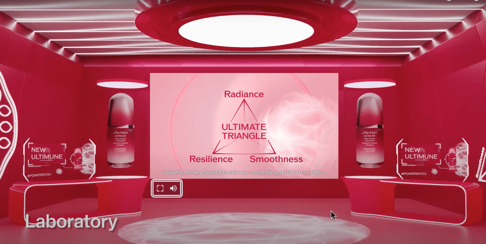 Video content streaming: The Lobby space consists of multiple virtual screens, where Shiseido-sponsored content is being played on a loop via. YouTube videos to make the platform more engaging to the end-users.